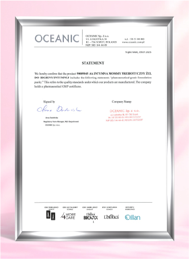 Tất cả sản phẩm AA Intymna đều được nghiên cứu và sản xuất tại nhà máy hiện đại bậc nhất Châu Âu, với chứng nhận GMP-EU, đảm bảo chất lượng và độ tinh khiết cao nhất.